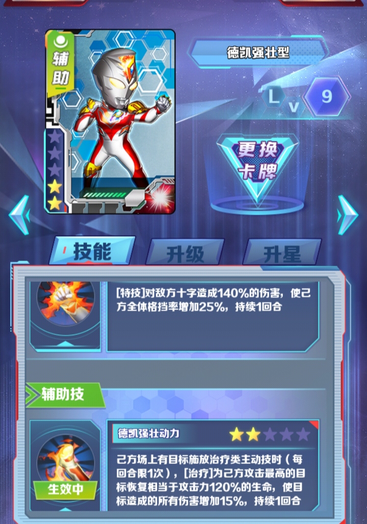 德凯强壮形态:还可以。对敌方造成140%的伤害,增加格挡,这个和齐齐心一样,装载技能都不怎么样。辅助技能的话,只要比如说如果妹妹释放了能量机。为最高的角色恢复血量,这个还是很不错的,但是触发的契机就是主动级回血