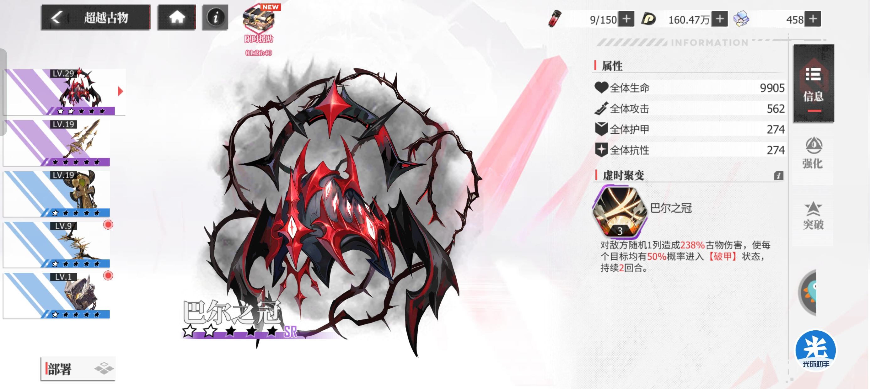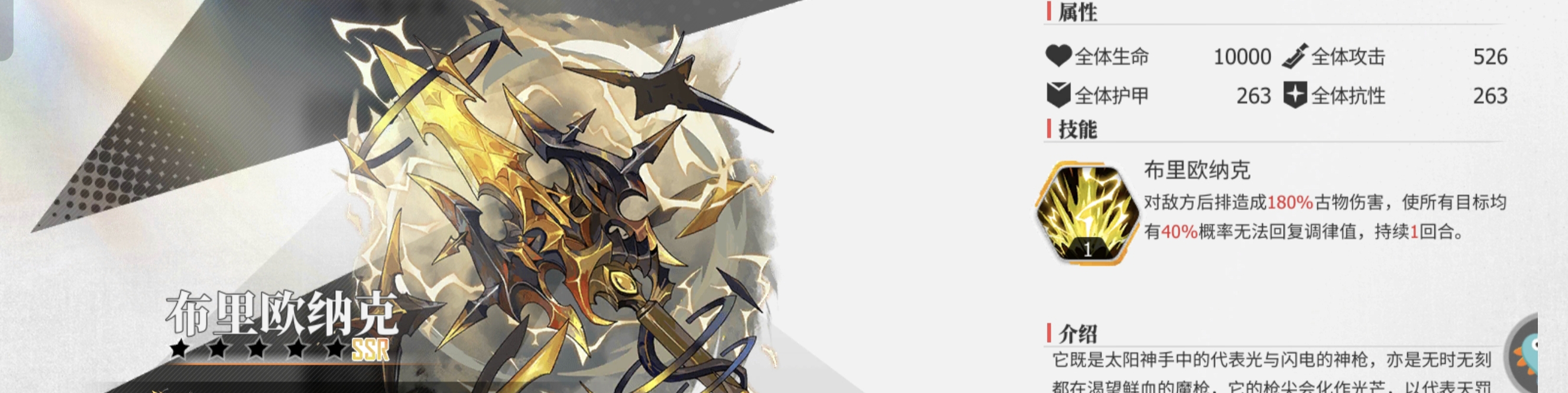 ⭐当然像SSR的【日辇之轮】和【布里欧纳克】这类百搭型的古物,是所有阵容的首选。