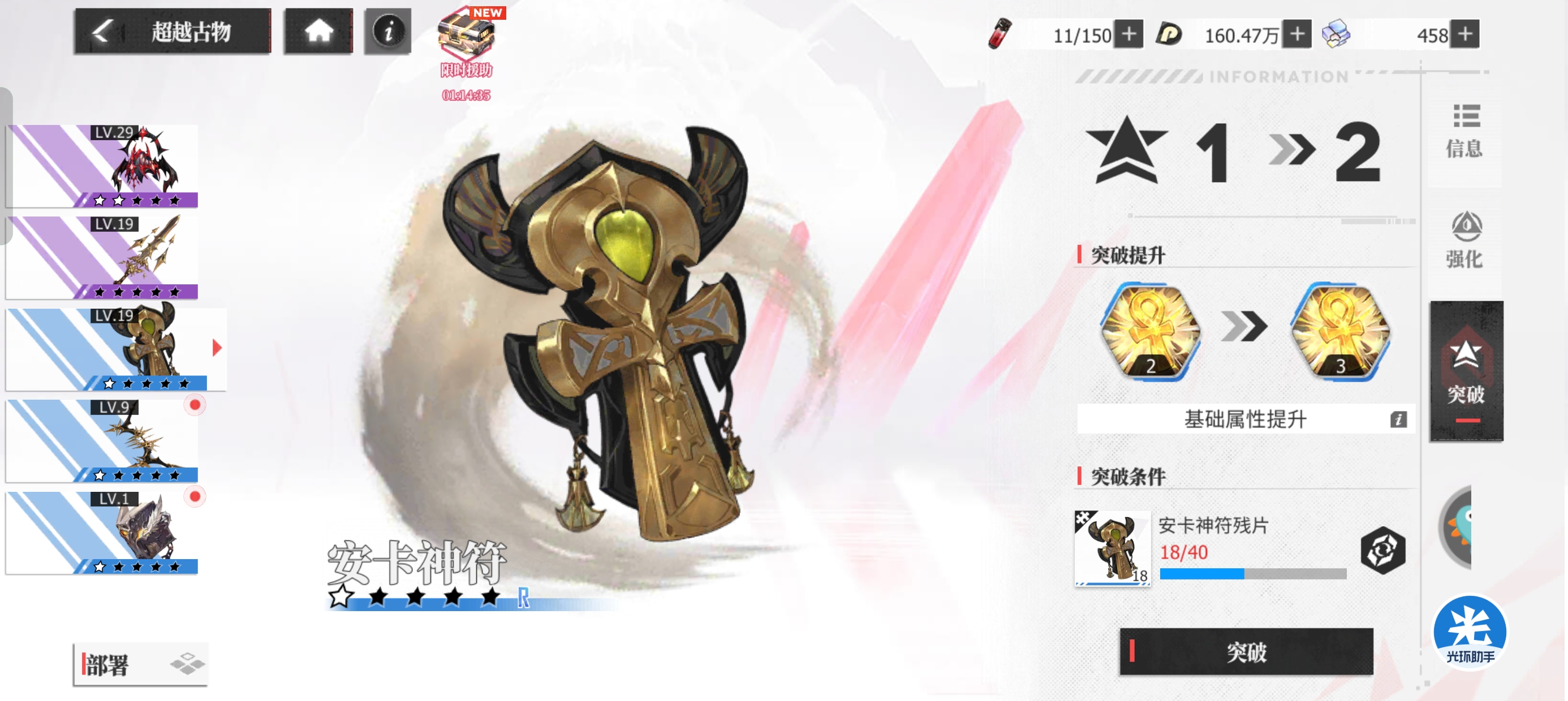 古物的赋能也是很多萌新玩家会忽视的核心点。分为【强化赋能】和【突破赋能】。