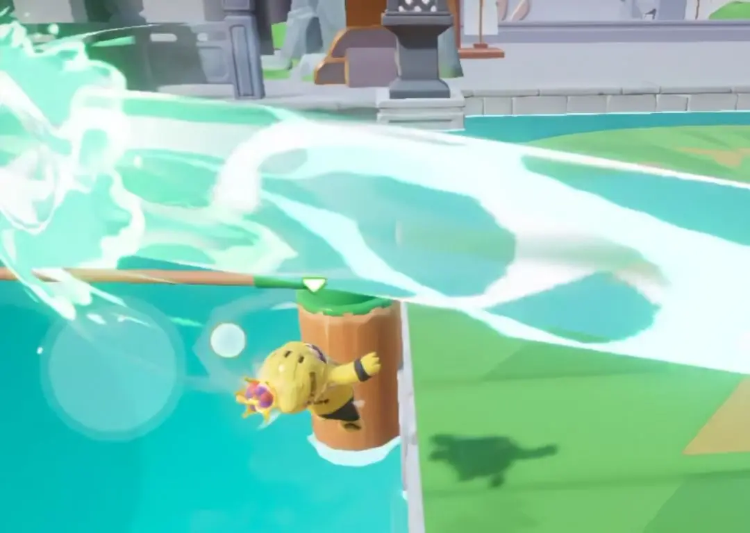 从缺口穿过去的确是个法子,但是更推荐从上方飞扑过去哦,这样不仅节省时间,还减少了星宝落水的概率,因为通道很窄只能排队通过,稍不注意就会被挤下水。