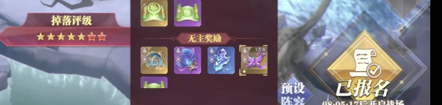 剩下的【参与奖励】和【无主奖励】只要参加活动就会给。