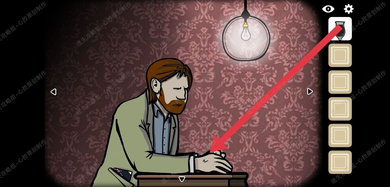 🔹2、把螺丝起子鸡尾酒给绿色西装的男人喝,从男人的嘴里得到螺丝刀,拿走他手中的葡萄酒杯,