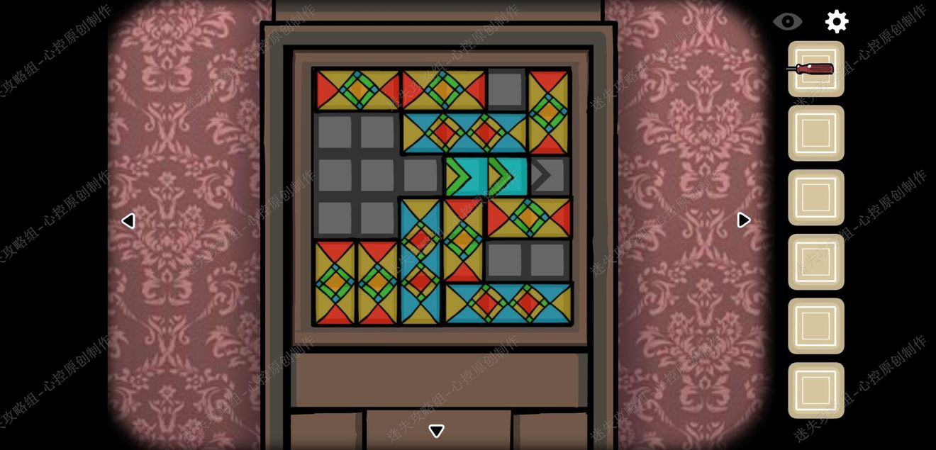 🔹7、向右走,用钥匙打开洗手间的门,点击洗手间的镜子,镜子就会分成五块,正确拼好镜子里的人,镜子就碎掉了,我们就可以得到一个提示,