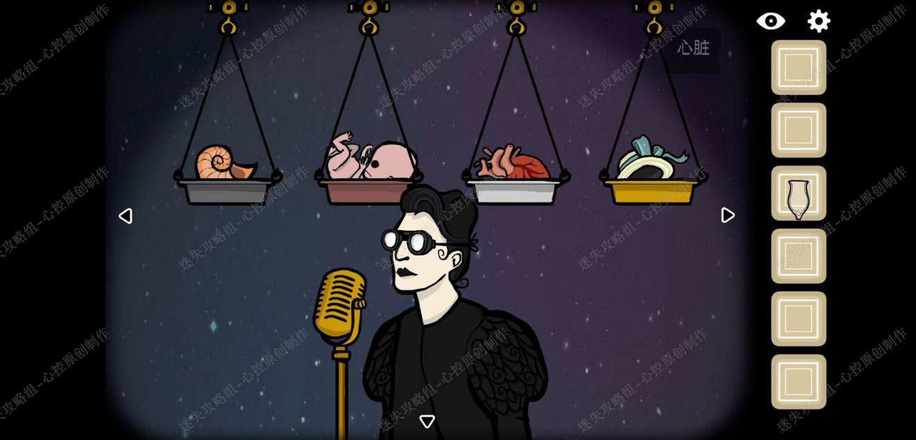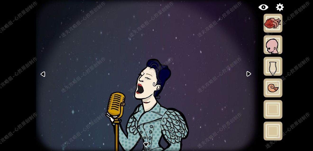 逃离方块:剧院第一幕 攻略crashfree发布于 2023-11-02关注转载自B站迷失攻略组(已获授权)第一幕,幕布重新打开零字就出现了一个女人,点击他,让他一直高歌就会出现一个穿着黑色礼服,戴着眼镜的女人,再点击一下,上方就会出现四个盘子,我们把我们刚刚得到的物品放到这些盘子上,顺序是贝壳婴儿心脏和帽子再点击这个女人,他会口吐一束光,嘴里长出一朵花,我们拿到花女人就谢幕了,