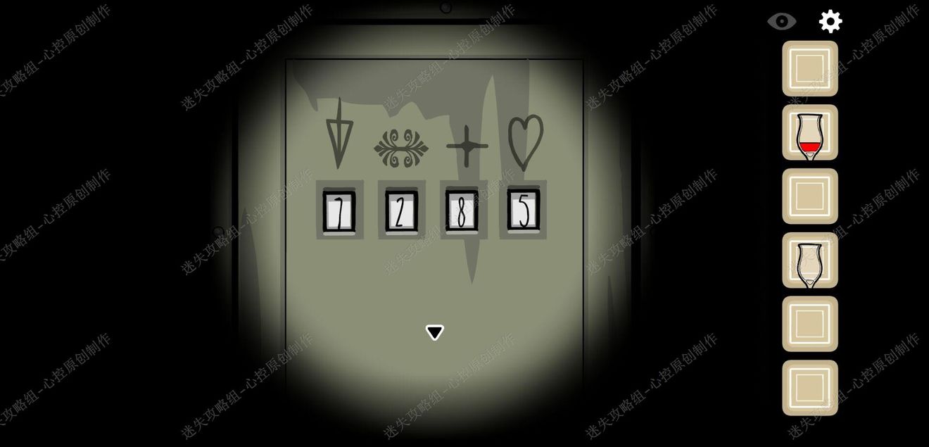 来到男人脑子里向右走,看到一个绿色的带有密码的门,根据上方的提示,我们可以得到密码是7285把门打开,得到黑色的方块,回到舞台,把黑色的方块放到最后一个黄色方块中,得到这个女人的脸,把脸放到正确的位置点击,女人就死掉了,第五幕结束,
