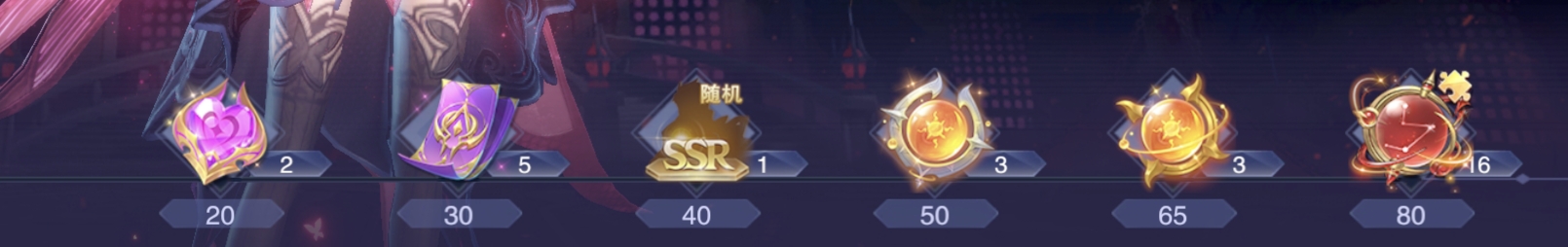 奖励一共是6个档位:分别是20、30、40、50、65、80印记。