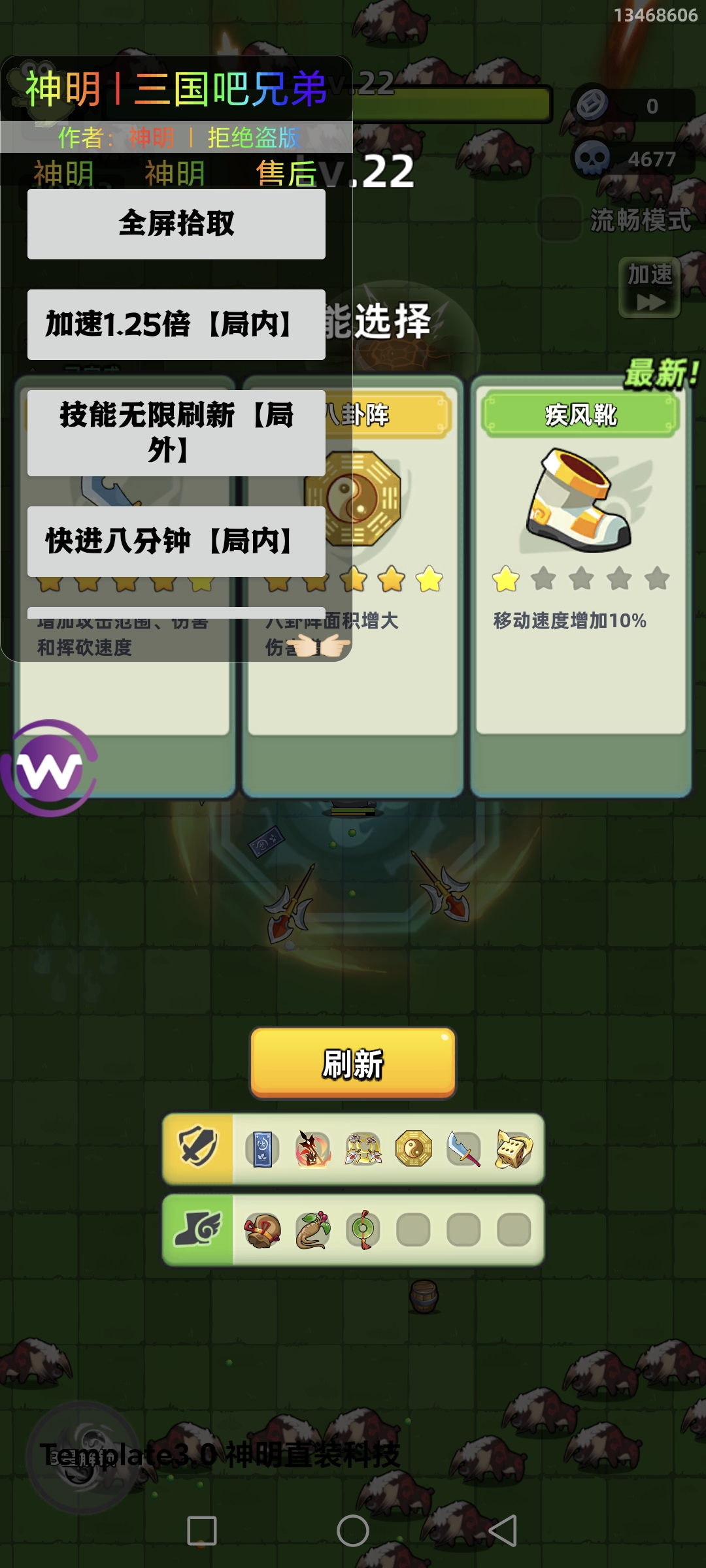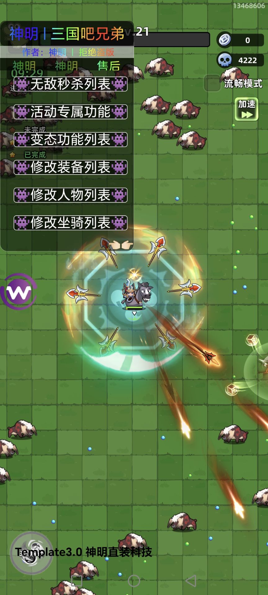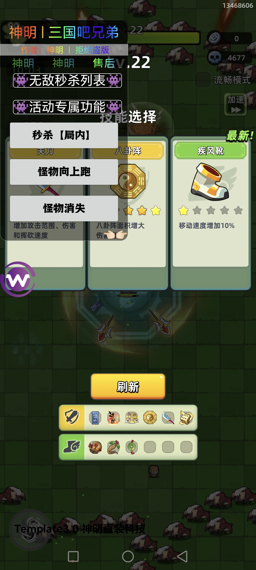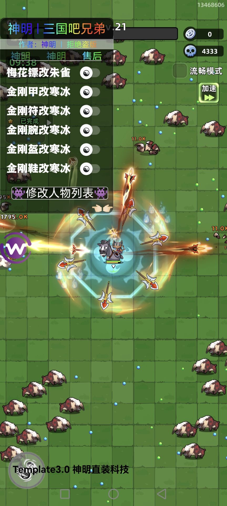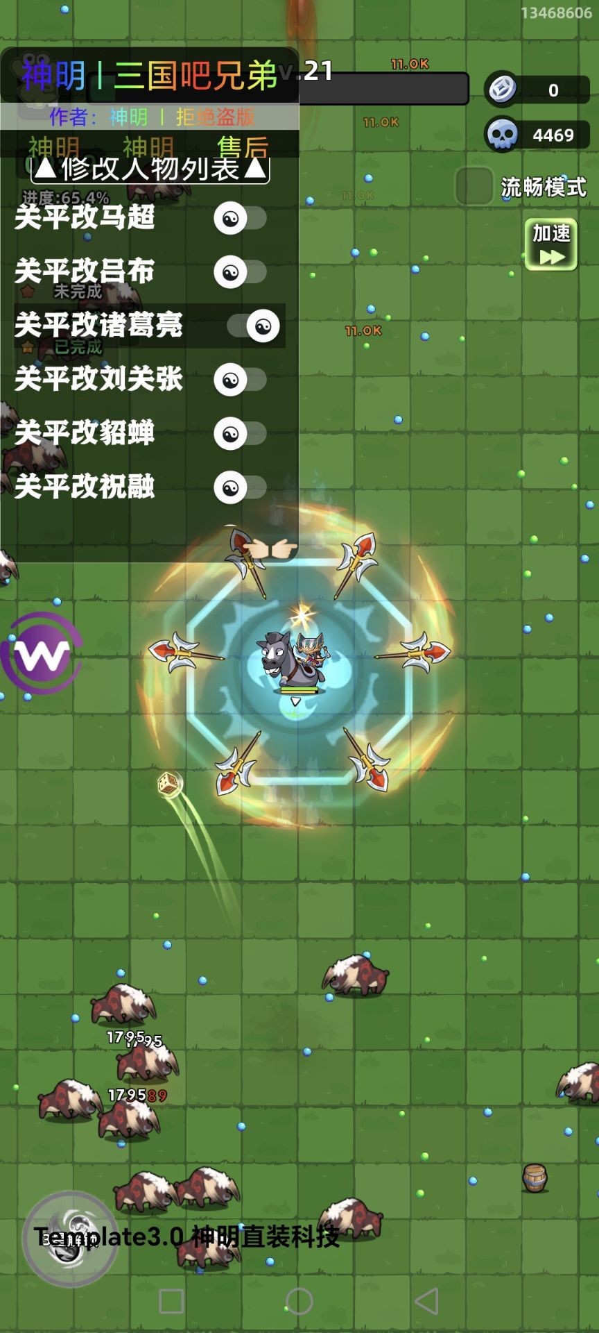 三国吧兄弟菜单版,功能有秒杀,加生命加攻击,修改人物,修改装备,敌人消失,跳过九分钟等等,具体看图