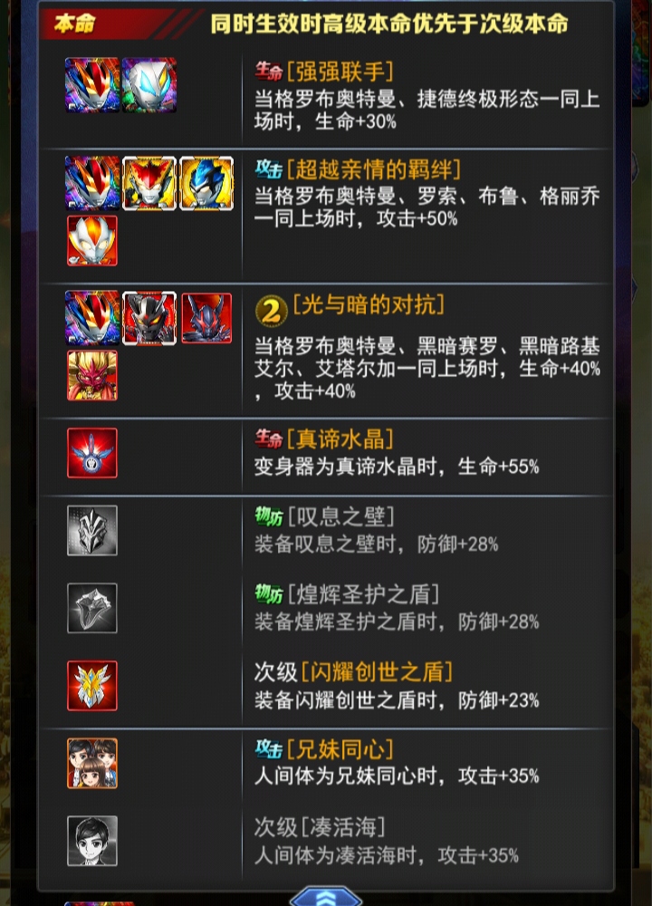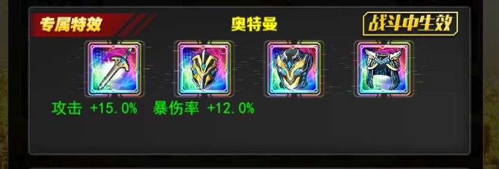 解析:上出场时,乙方所有奥特曼获得一个buff,这个buff全免抗爆韧性格挡闪避率增加25%,然后是一个增伤攻击时,乙方如果有一名奥特曼角色伤害增加10%。