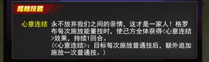 布每次施放能量技时,使己方全体获得<心意连结