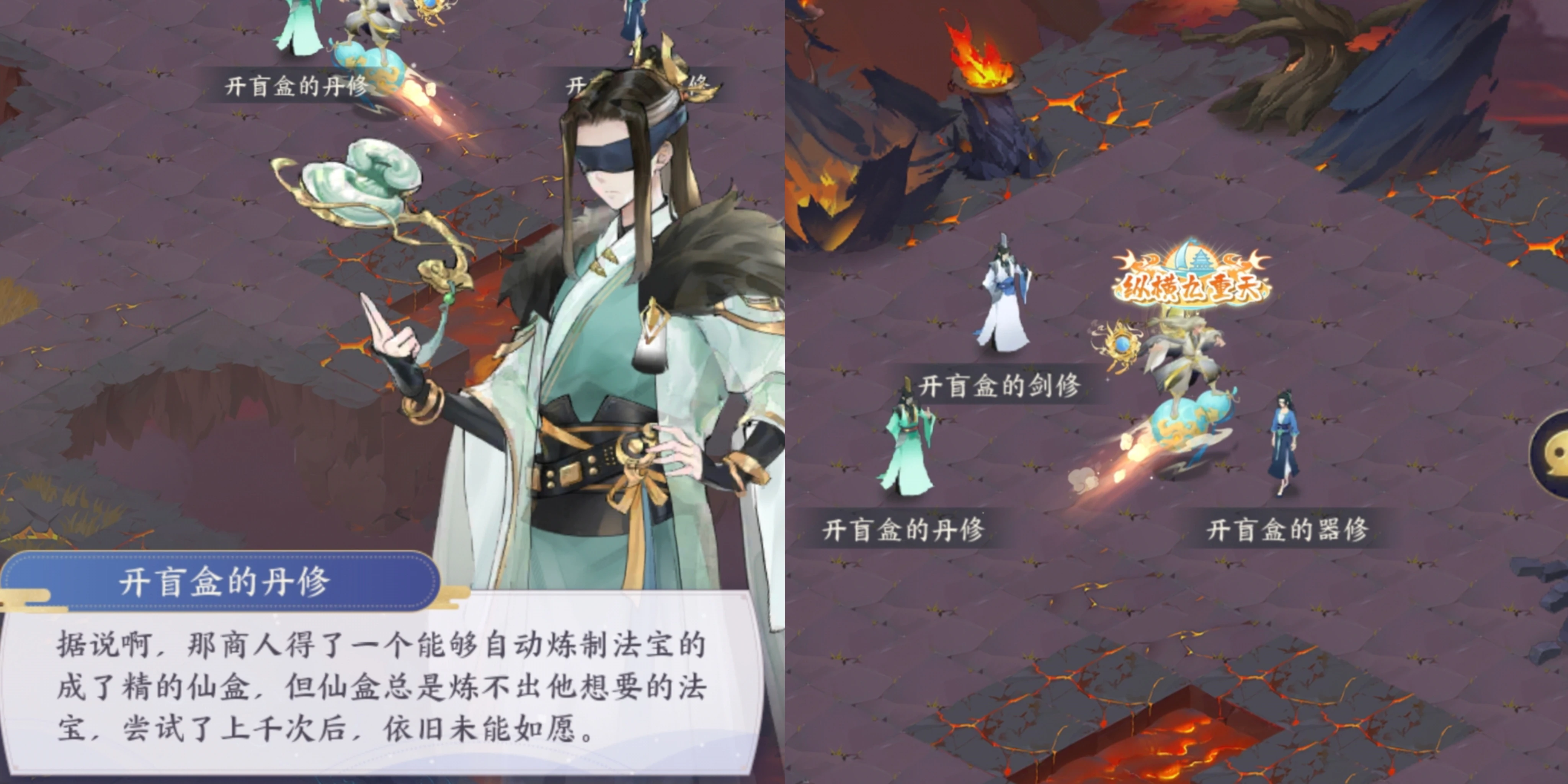 3:开启【水月秘境】的第3处线索。在神炎界的第二章【飞火道】,跟着主线走,可以遇到【无邪真人】,邀请我们参加抽盲盒活动,和他一起完成这个活动以后,就可以获得第3个线索了。