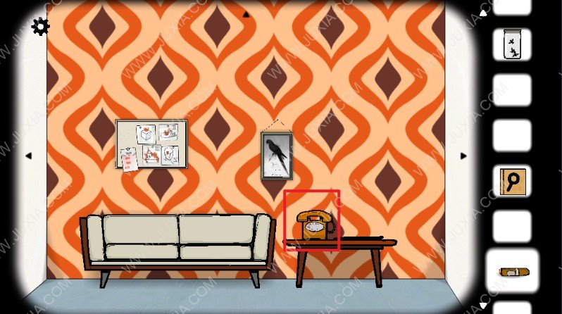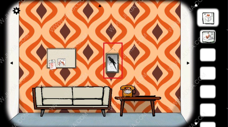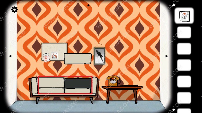2. 然后我们切换场景,点击下图红色框将沙发垫抬起来获得第二张纸片。