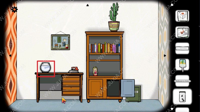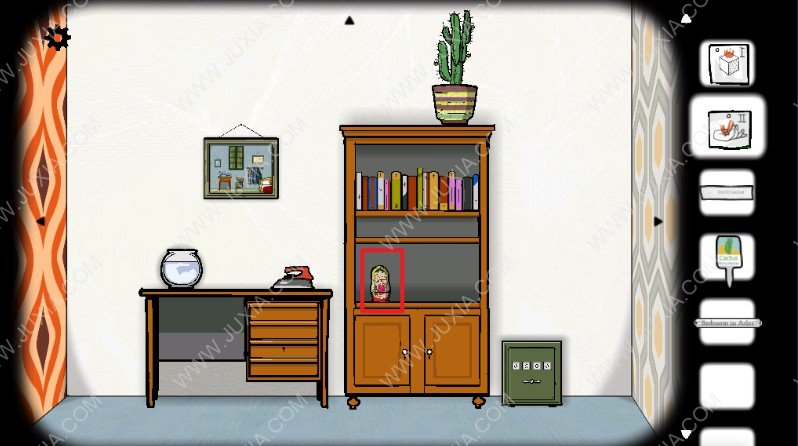 7. 然后我们用钥匙打开下图红色框位置的柜子,点击获得里面装着昆虫的罐子。