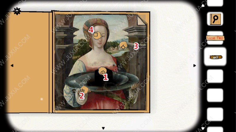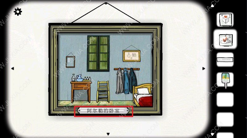 5. 点击下图红色框位置的画像,点击红色框获得一个写有“阿尔勒的卧室”的牌子。