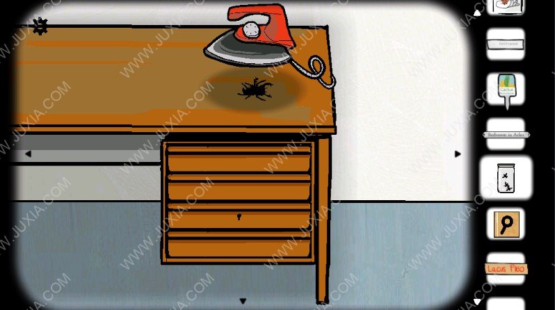 12. 这里我们先点击熨斗将熨斗抬起来,然后驱赶虫子将虫子赶到熨斗的下面,再次点击熨斗将熨斗放下,这时我们可以在熨斗下面获得一把钥匙。