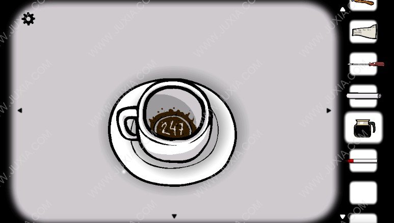 31.将咖啡倒入下图红色框位置的杯子里面,再次点击咖啡杯,我们可以看到杯底的数字247。