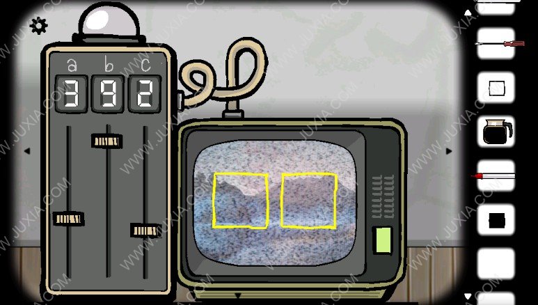 46.随后再将我们在打字机获得的数字提示392输入电视机里面,我们将黑白两个方块放入电视机的画面里的方框。