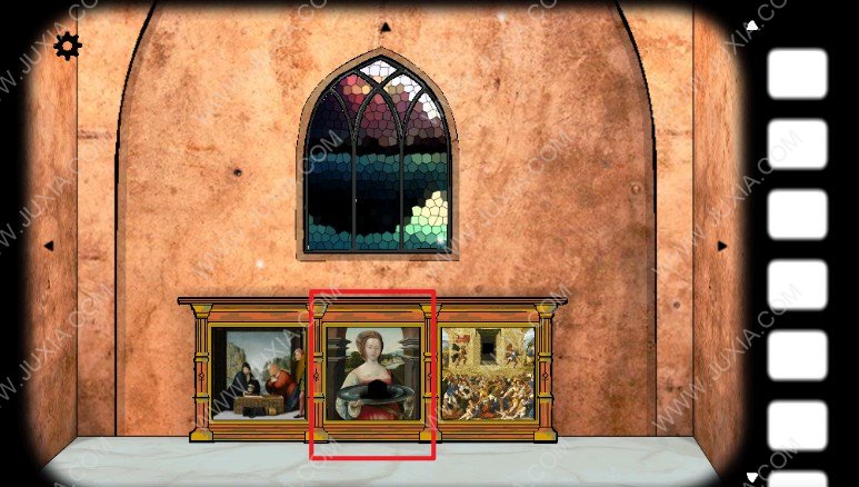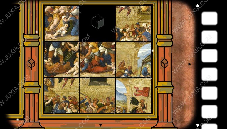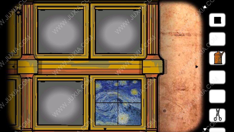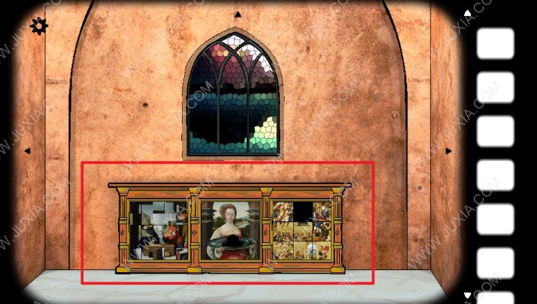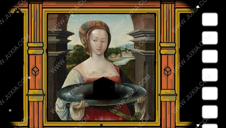 50.完成两个拼图之后我们点击中间的画面,拿到女人手里的黑色方块。
