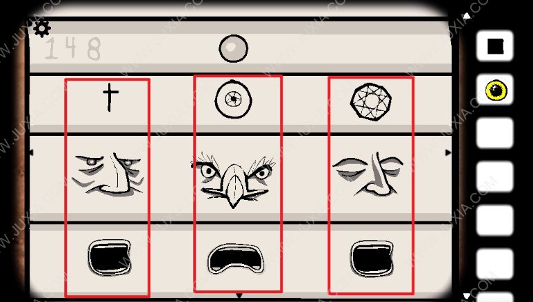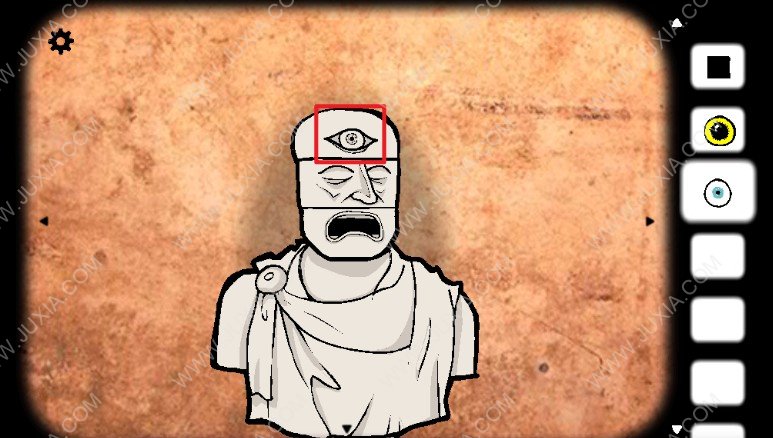 52.然后我们根据下方的红色框来调整上方的石像的头部,点击我们可以获得眼珠。