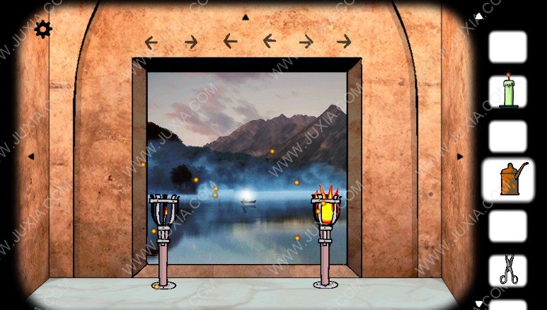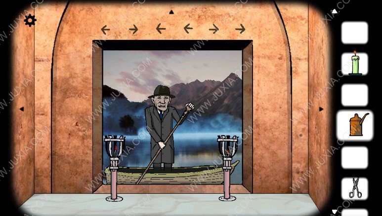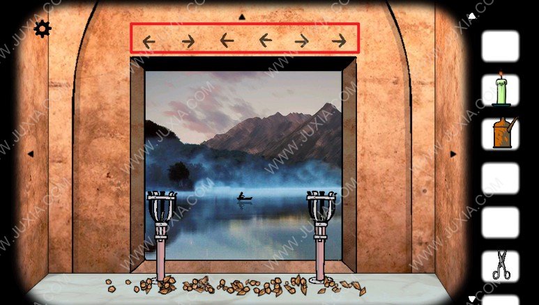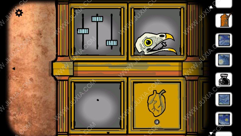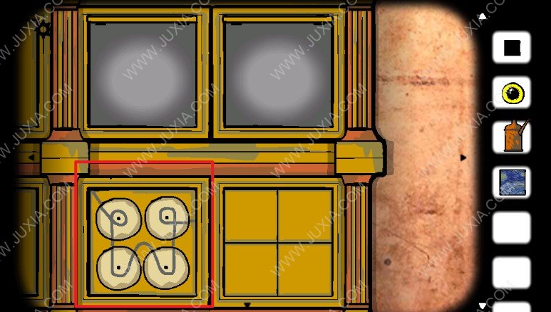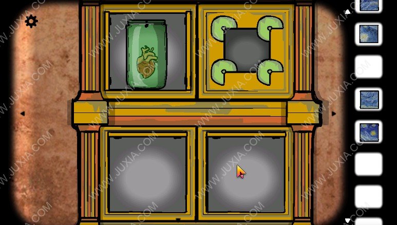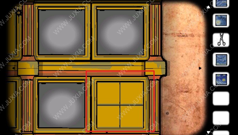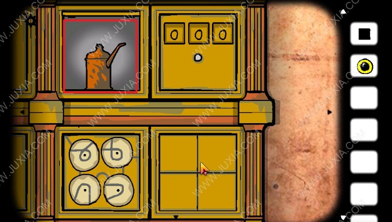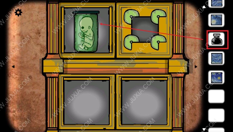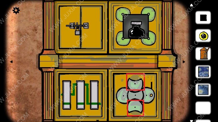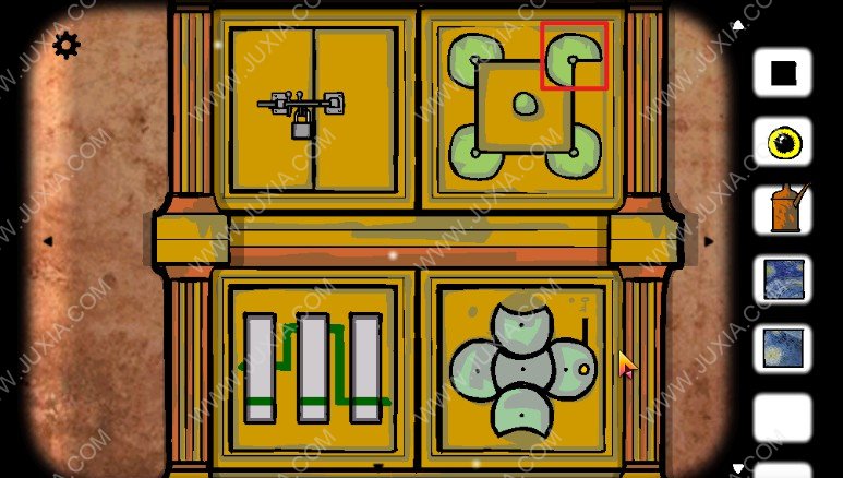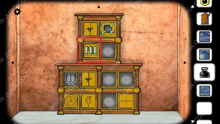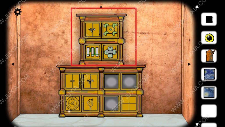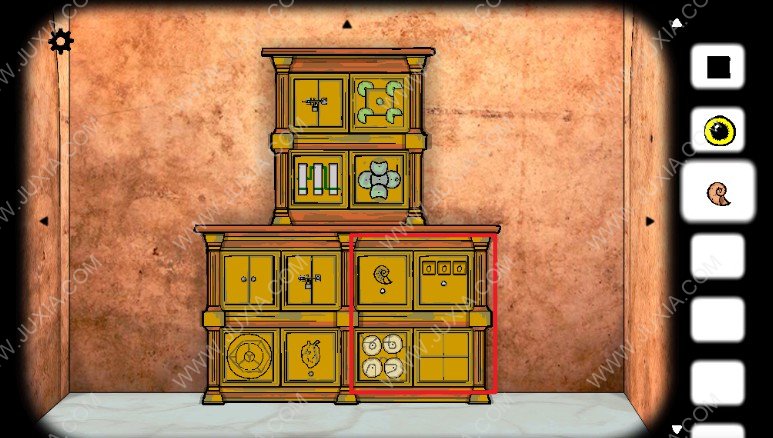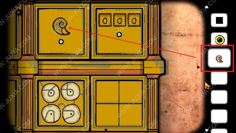 55.然后来到下图位置点击红色框,将我们获得的贝壳先放入对应位置,便可以将柜子打开获得红色框内的油壶。