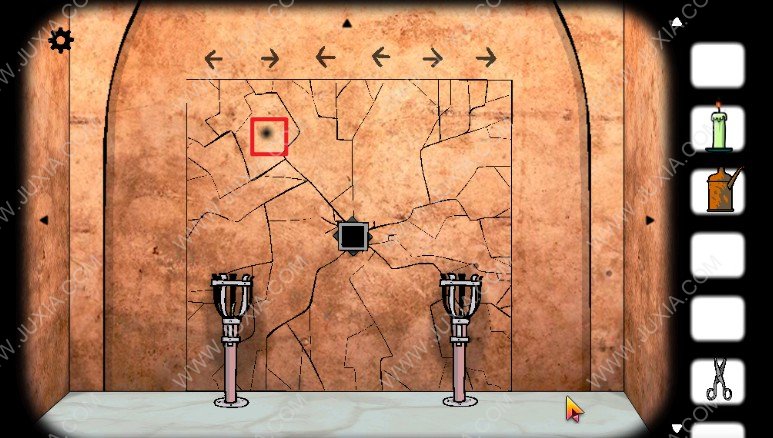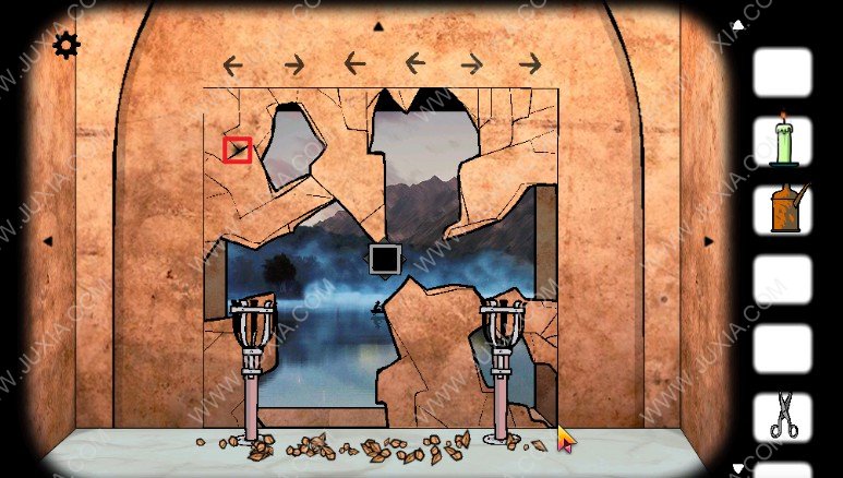 57.将下图红色框内的线条经过四个按钮的旋转将其连接在一起,如下图所示,点击打开我们获得一张图案碎片。
