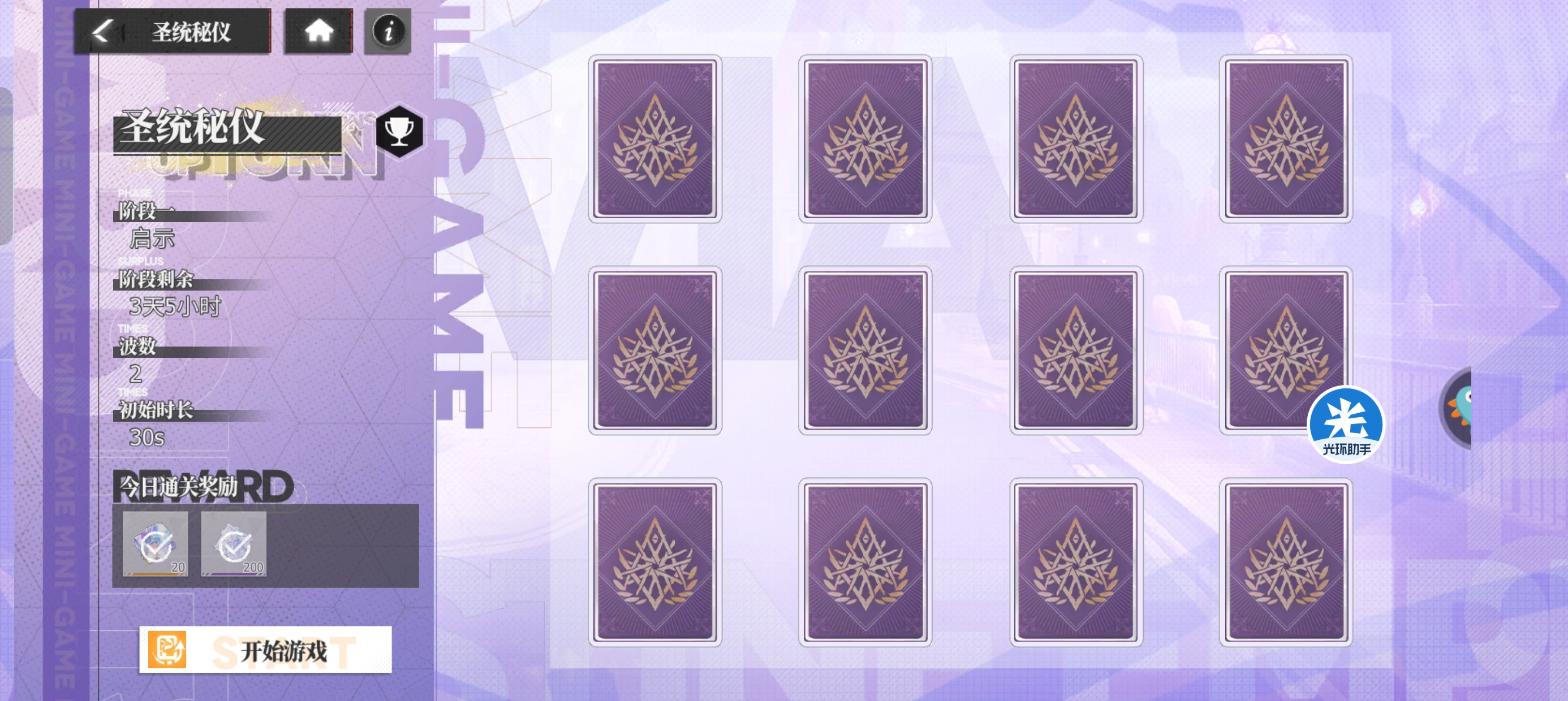 ②【圣统秘仪】玩法攻略。圣统秘仪是以【记忆翻牌】小游戏的方式来进行的。