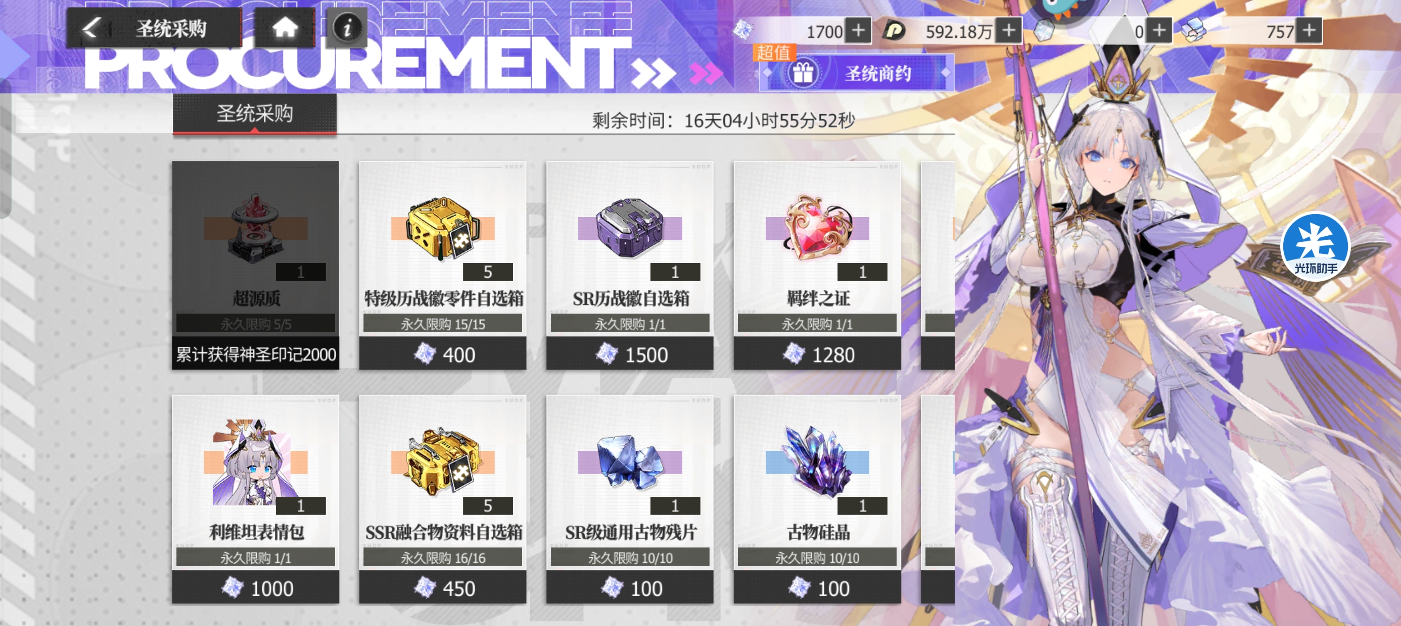 三:【圣统采购】兑换推荐。本次【天音代行】活动获得的兑换资源总体来说比之前【蔚蓝假日】是要多的,所以在兑换方面也是能够获得更多的资源。