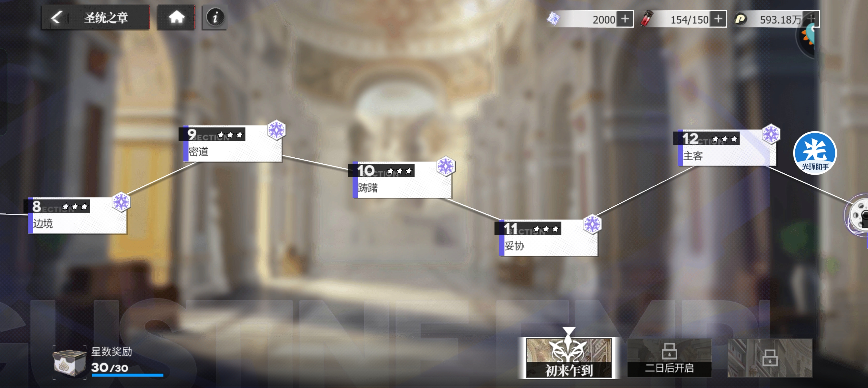 3:【圣统之章】可以获得多少个印记?圣统之章一共3个关卡,每个关卡完美30星通关可以获得300个神圣印记。
