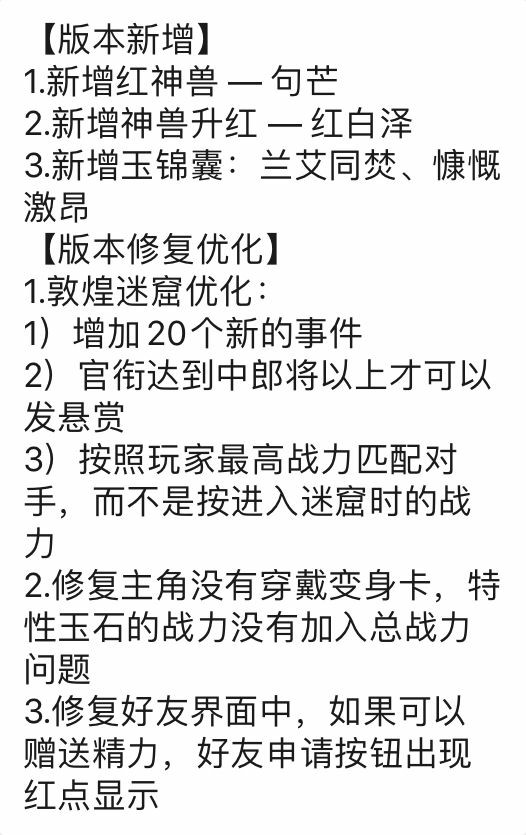 然后还有新神兽,和白泽界限升红,对平民玩家影响不大,反正也玩不起,不过对土豪玩家可以说是打击,刚刚推出的讹仙已经非常恶心人了,真武战神里的很多霸主就因为一只神兽改变战局,临时翻车。