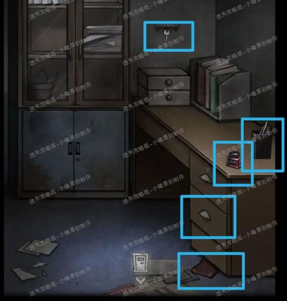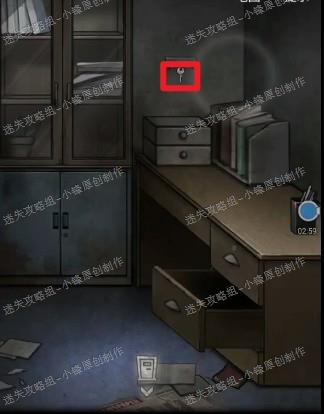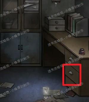 1、左下走,点击进入办公室,打开办公桌第二层抽屉,剥开东西得到小零件还有打火机。