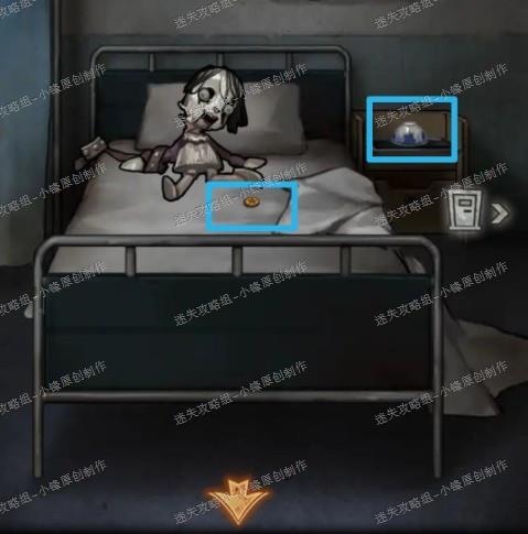3、回到我们刚开始来的地方,使用钥匙打开2009房间掀开被子。进入2009房间之后,收集工艺品和星星饰品还有空碗。