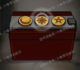 5、我们返回到之前有镜子的房间,点开床上的红色盒子,将我们得到的太阳饰品、月亮饰品、星星饰品放在盒子上方,打开盒子得到玻璃罩子
