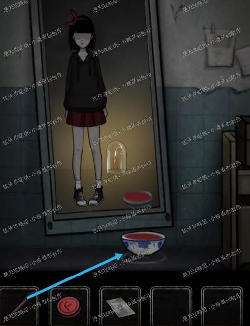 6、使用打火机点燃镜子前的蜡烛使用玻璃罩给盖上、再将玩放在镜子前倒上墨水、用笔敲。第一章完。