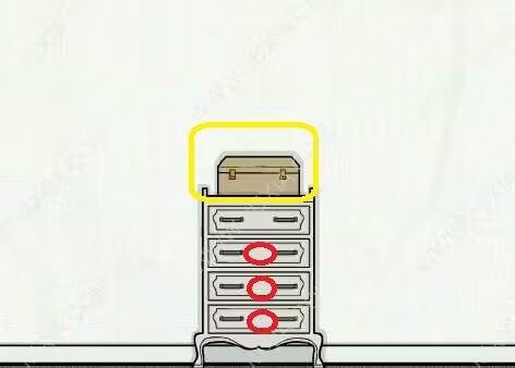 27、抽屉柜中,两个黄圈的抽屉是提示,一个红圈的抽屉里有一个砝码。27、
