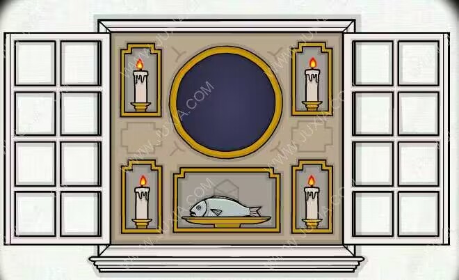 4、去到窗这里,对窗里的油画使用小刀后就能全部撕掉。就能看到传送门入口。放上所有蜡烛并点亮,传送门就会打开,同时放上鱼,打通前往鱼的自我的通道。4、1