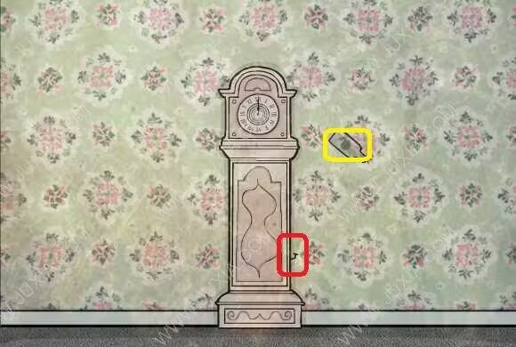 18、在鱼房间的立钟这里输入二点一刻得到三角钥匙。回到人房间,立钟中间放入钥匙处放入三个三角钥匙打开,掉出来一个已经死去的老人。18