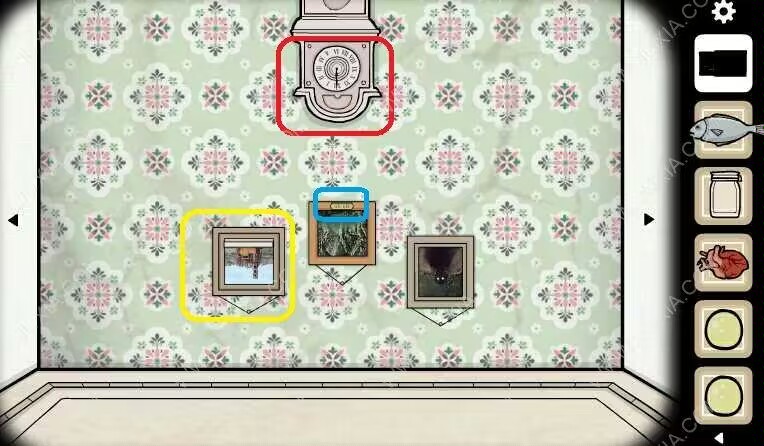 37、去立钟设置成七点三刻,前往清晨。立钟左边的鸟,给它吃心脏、壁虎、虫子、鱼,然后多次点击鸟,会吐出来婴儿。37