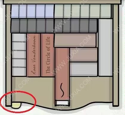 13、书柜谜题设置成下图就可以点击书,让书掉下去,后续就能在心脏界面看到地上的书。同时红圈这里有一个弹珠,拿上。13