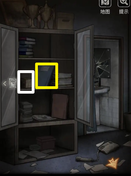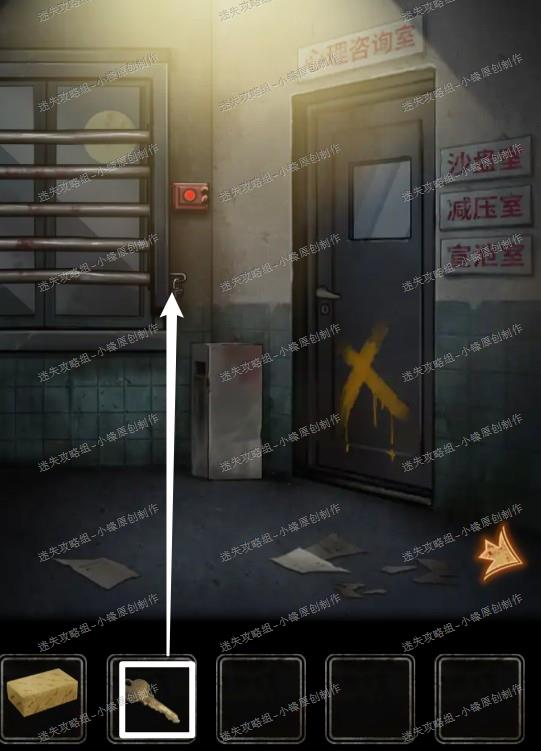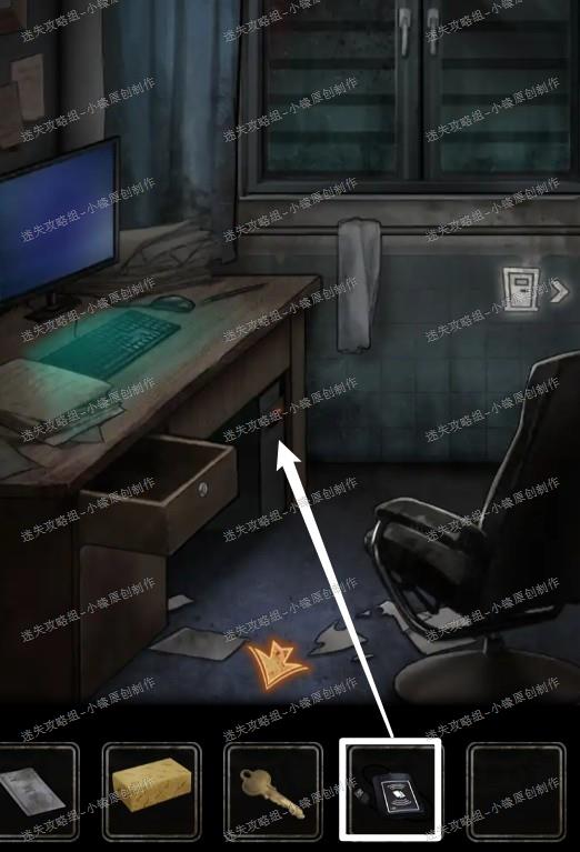 6、使用钥匙进入物理治疗室,在地上捡到收音机,向左走,一直点击左边的箱子堆得到废旧仪器还有破损的控制器。