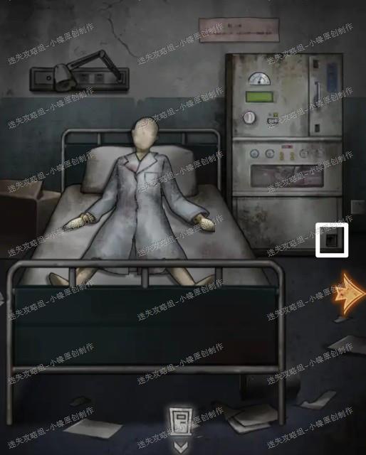 13、回到物理治疗室,将海绵垫在头上再将头套放上,将电压调成百分百,这时候医院就会显露原来的样貌,我们来到窗口,使用衣物逃脱即可