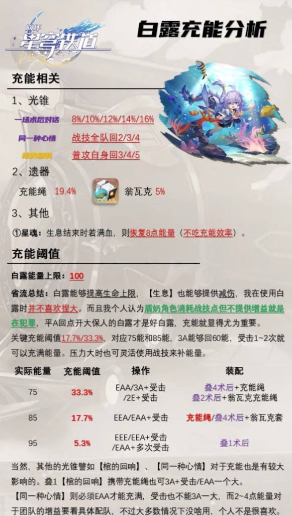 因为白露的奶量溢出是溢出的,在没有①星魂的前提下,充能绳是比生命绳更好的选择。