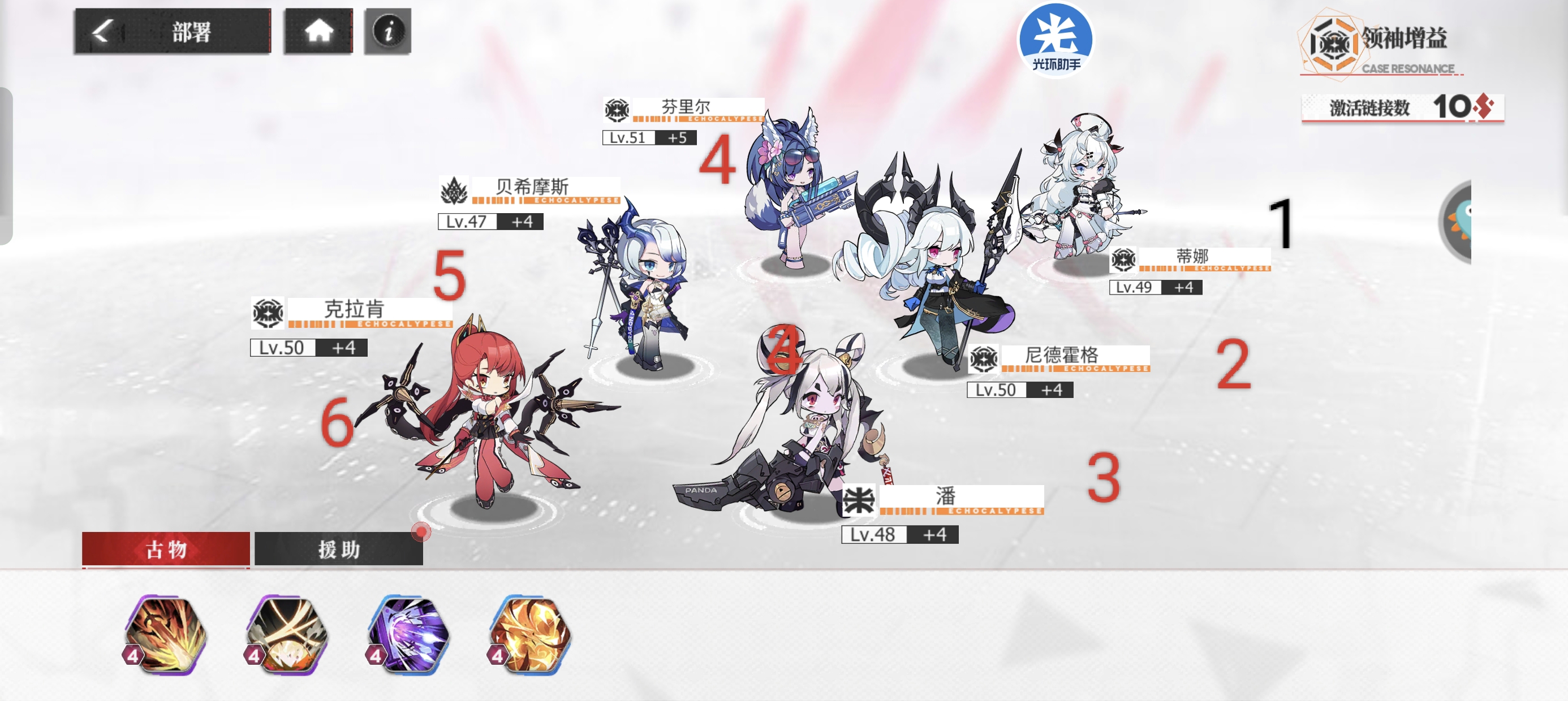 ③站位【4-6号位的部署】。4号位推荐部署主c,打第一波伤害。