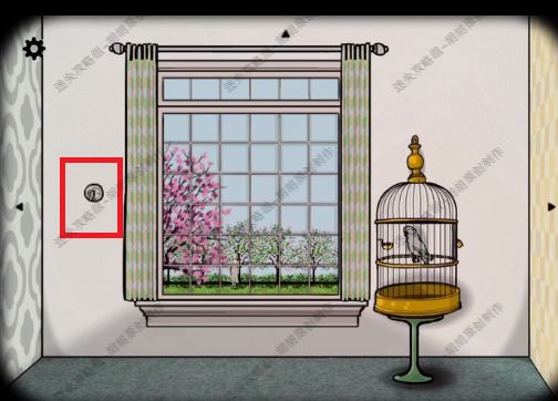 4. 切换至有窗帘的房间,点击拉开窗帘,点击窗户,获得第二块碎片;这里可以点击墙上的开关,把灯打开。(听我的,灯先开着)
