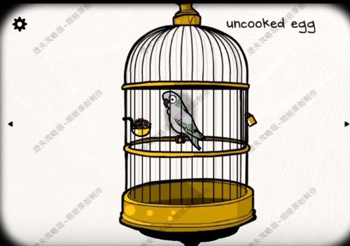 6. 切换至有壁炉的房间,根据留言板提示,用鸟食喂鸟,点击鸟,可以得到蛋,然后锅加水放到灶台上用火柴点燃,煮蛋,煮熟后放在小杯子里用勺子敲碎,获得黑方块6.1.2.3.4