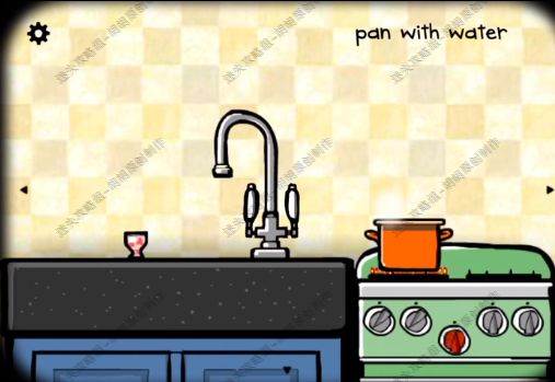5. 切换至有水池的房间,看看能找到什么,点击柜子,获得锅、鸟食、木头。 5