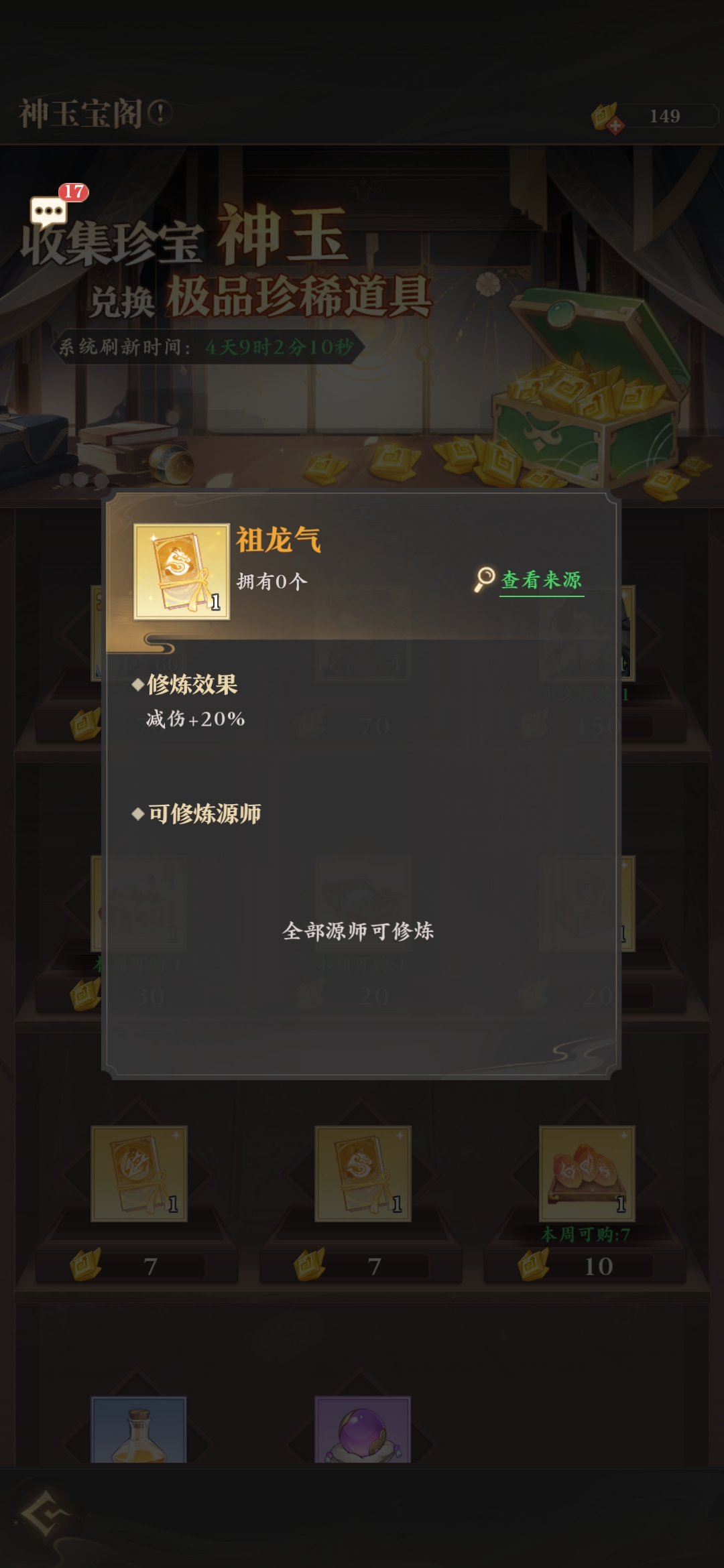 获取途径:各种苍玄周纪中的聚宝兑换中换取(不同周纪兑换的气运不同)