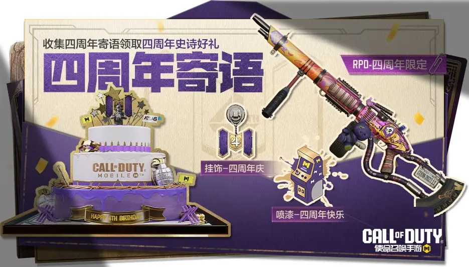 ● 【四周年寄语】惊喜上线,收集四周年寄语领取史诗级武器:RPD-四周年限定;