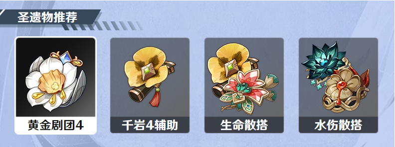 「黄金剧团」:对几乎只有元素战技伤害类型的芙宁娜来说极其契合,且芙宁娜也常在后台;
