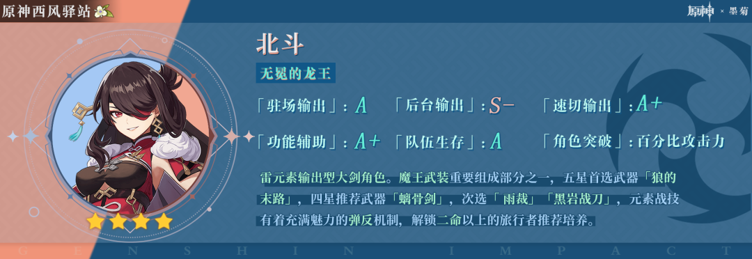 关于抽取的建议:北斗是一个比较值得满命的角色,作为后台伤害角色,在四星角色中有较高地位,没有满命的旅行者考虑抽一抽。