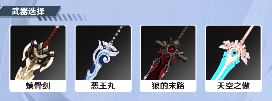 「其他武器」:其他副词缀为充能/攻击的武器都可以做考虑,当然想输出的话也不是不行,这边就不多提了,有机会可以在角色攻略中提到。