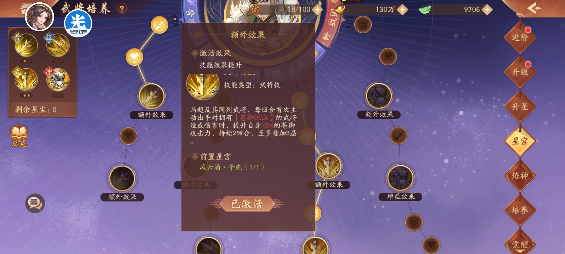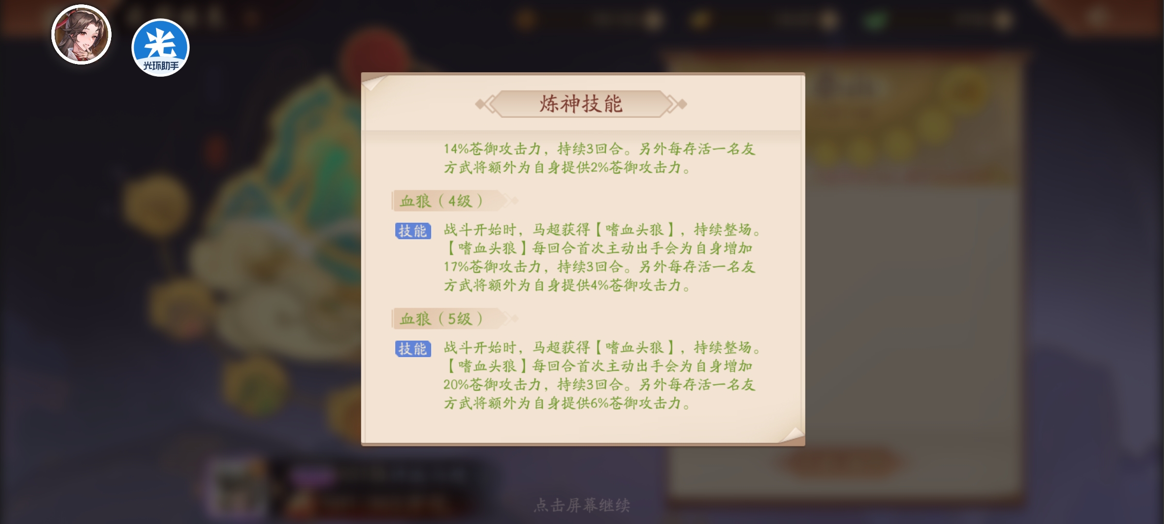 普攻3点激活额外效果苍御流血,武技5点激活额外效果概率加回合和提升苍御攻击。赵云马超同列,这样的话赵云也能吃到苍御攻击加成。